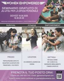Giovedì 14 settembre dalle 18.30 alle 20.30 si terrà presso il nostro Centro Certificato, in Via Canonico Lugaresi 202 a Cesena, un SEMINARIO GRATUITO del corso di difesa personale femminile WOMEN EMPOWERED aperto a tutte le donne (a partire dai 13 anni) .